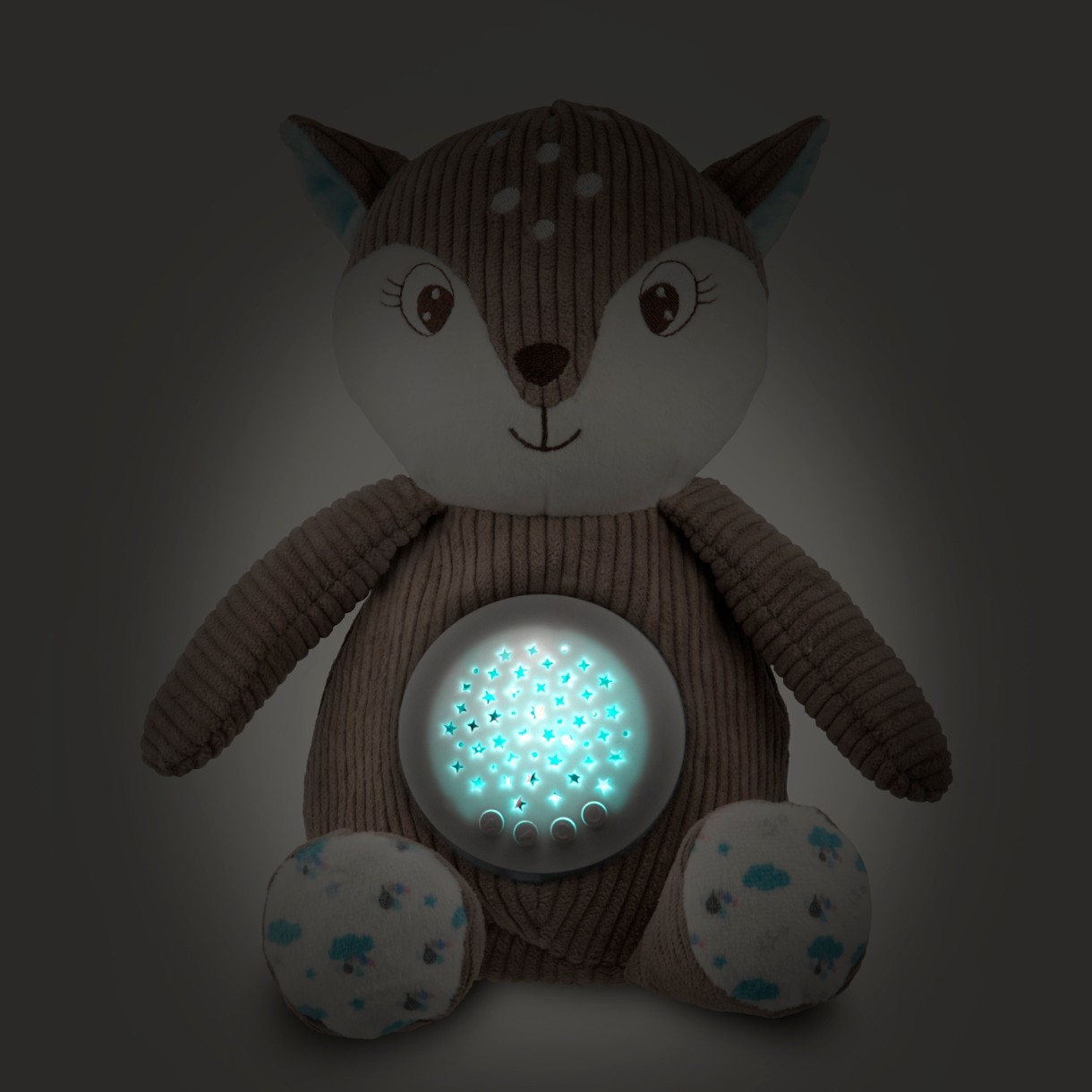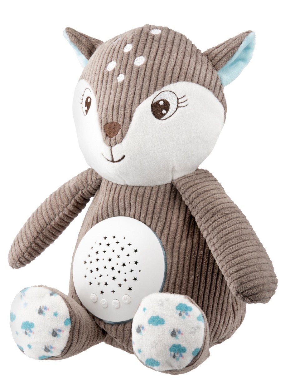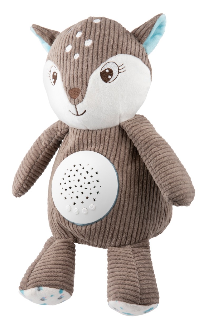 Олень с музыкальной шкатулкой и проектором 3-в-1 — идеальный компаньон для детского сна. Мягкий плюшевый талисман со спрятанным в животике механизмом, изображающим разноцветные звезды и играющим расслабляющие мелодии, успокоит малыша и облегчит ему засыпание. Мягкая игрушка работает в 3-х режимах. Он может излучать мелодии и световые проекции из живота, только мелодии или только нежные огоньки, служа, таким образом, ночником. Вы можете выбрать одну из 12 спокойных мелодий, включающих в себя нежные звуки природы, пение птиц и биение сердца, а также возможность установки 5 уровней громкости в зависимости от предпочтений малыша. Через 30 минут игрушка автоматически выключится. Идеальный подарок с рождения. Доступен в двух цветовых вариантах, для мальчика и девочки. Вы легко сможете содержать Оленя в чистоте, вынув механизм из животика, талисман можно постирать вручную.