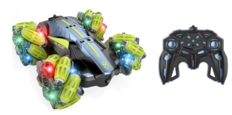 Это игрушечная трюковая машинка с дистанционным управлением. Автомобиль специально разработан для выполнения различных акробатических трюков и зрелищных маневров, оснащен универсальными колесами и имеет привлекательный дизайн.