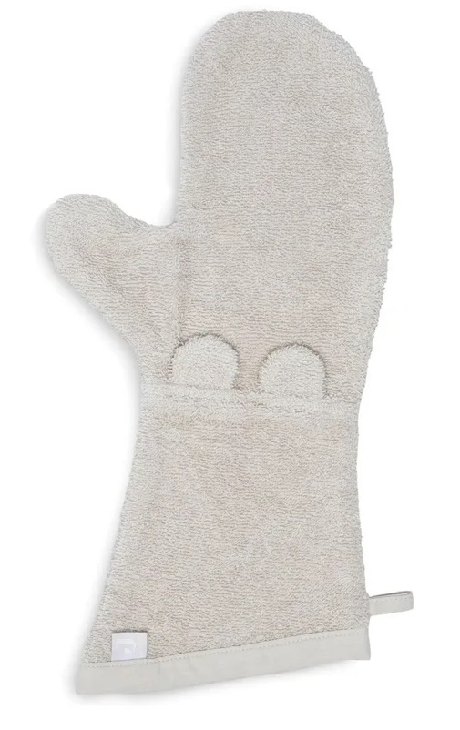 Варежка для мытья Jollein также имеет удобную петлю, чтобы ее можно было повесить и дать высохнуть.