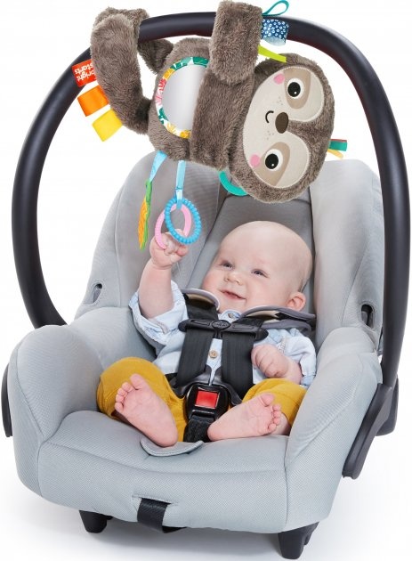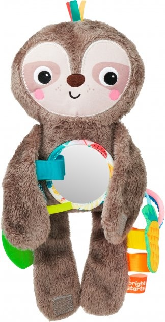 Мягкий, приятный материал. 4 различных способа прикрепить игрушку: за ручки, за ножки, и за ручки и за ножки, за кольцо. Детали различной текстуры привлекают внимание ребенка: прорезыватель в форме лепестка, два разноцветных колечка, ананас из шуршащего текстиля, зеркальце на животике ленивца. Милый дизайн игрушки понравится малышу. Способствует развитию мелкой моторики и воображения.
