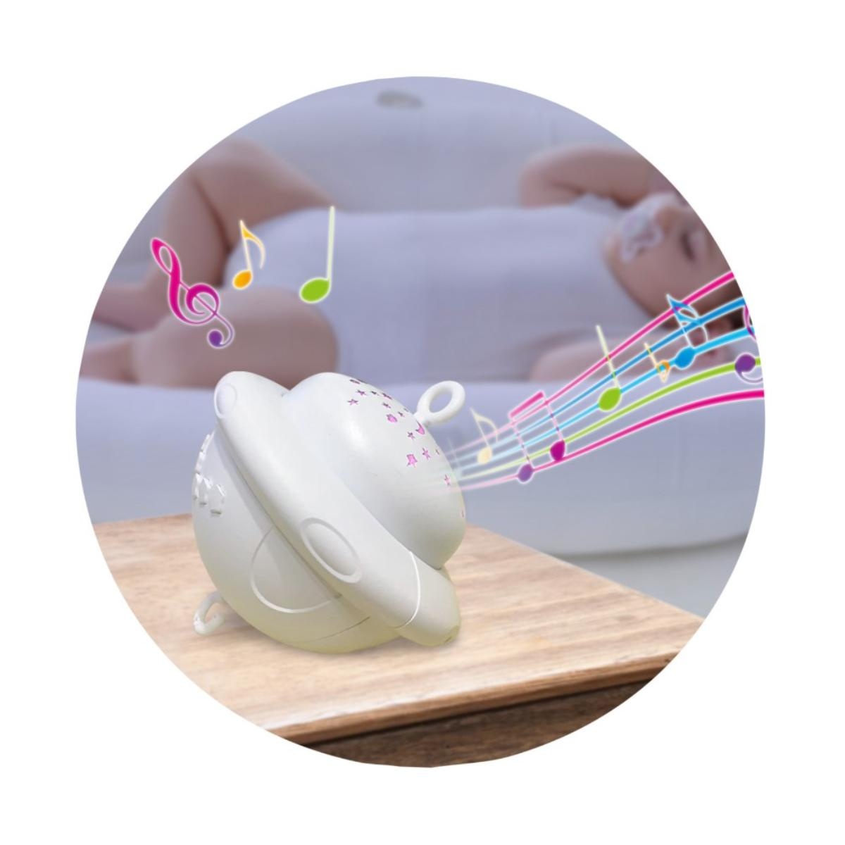 Эта музыкальная карусель подойдет для новорожденных. Нежные мелодии помогают малышу легче заснуть. Карусель успокаивает малыша и привлекает его внимание. В игрушке есть проектор, который проецирует разные формы и цвета. Каждая плюшевая игрушка вращается над его головой и заставляет его осмотреться, таким образом игрушка развивает его зрение и слух.