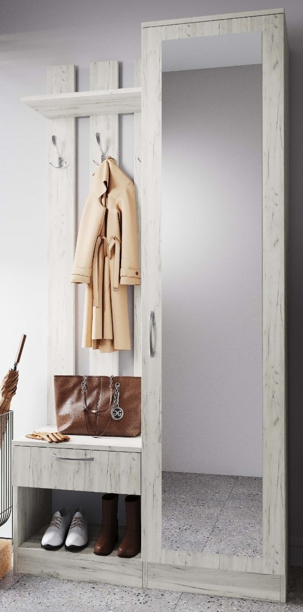 Прихожая ML-Mobila МЛ-8 (с зерколом правая) Дуб Крафт Белый