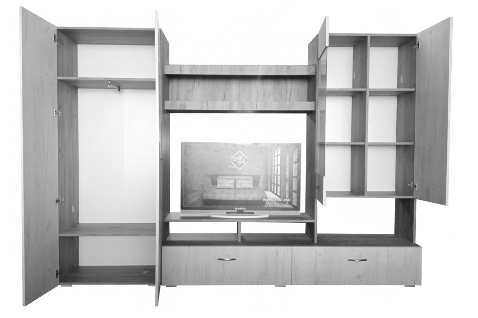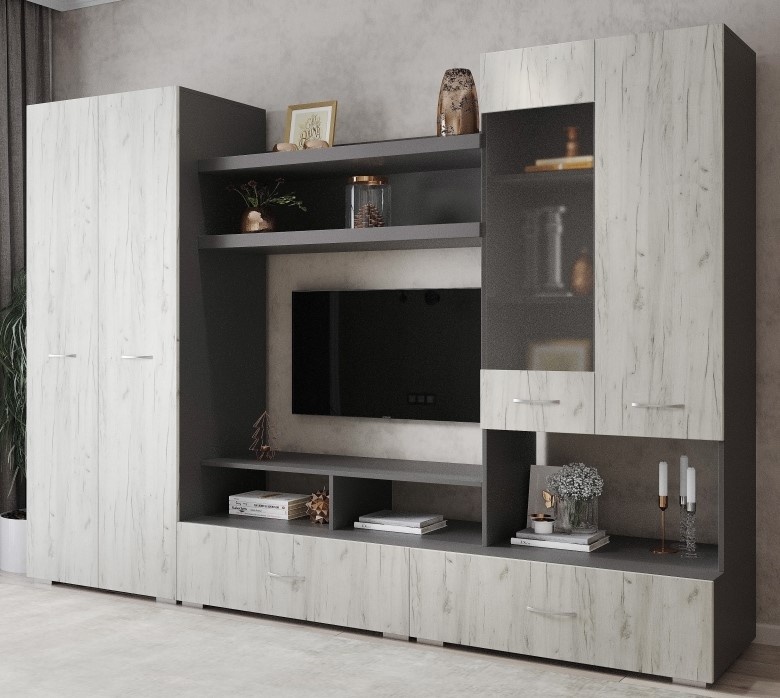 Гостиная ML-Mobila МЛ-1 Вар.1 2800 Антрацит/Дуб Крафт Белый