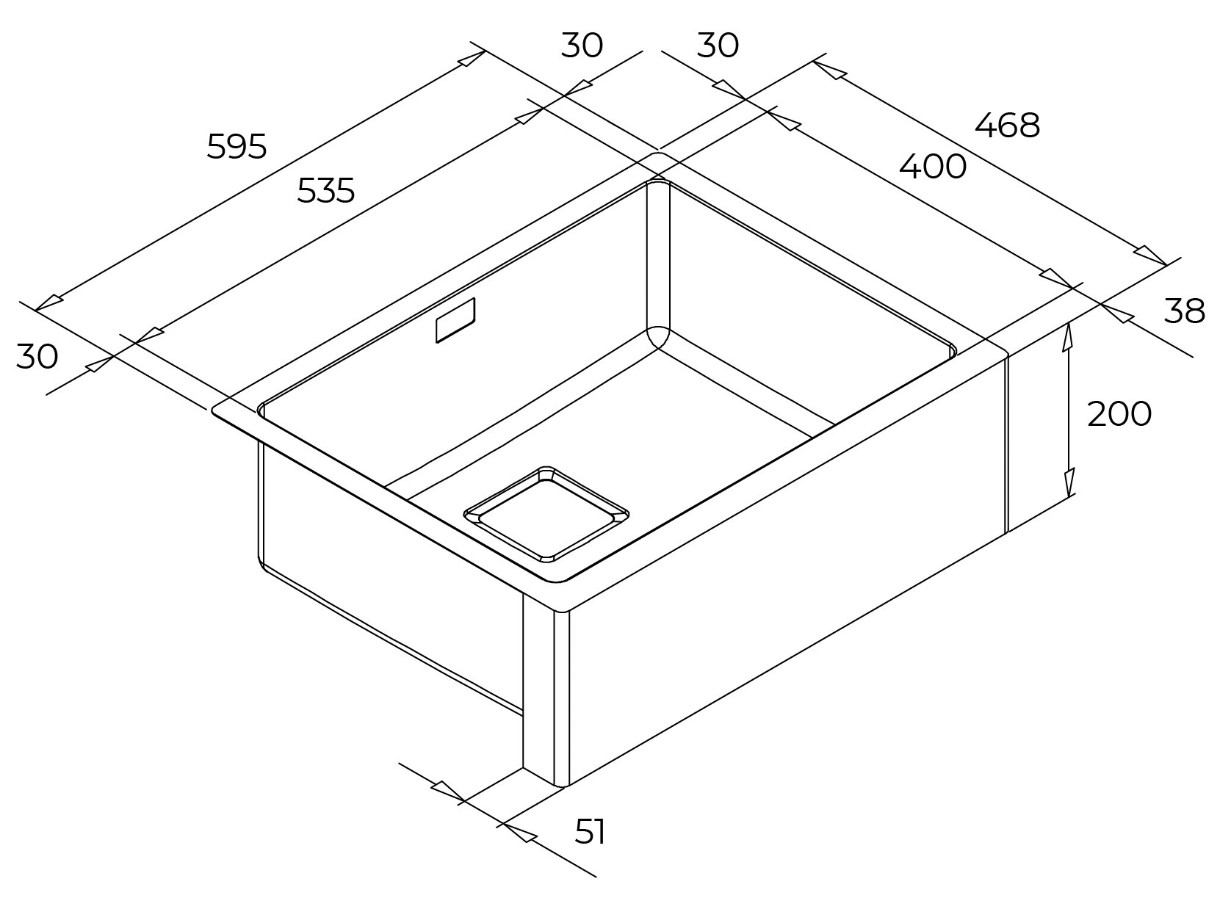 Размер мойки595х468х200 мм