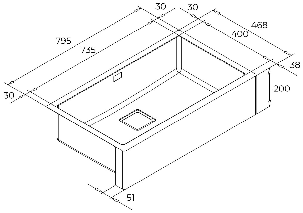 Размер мойки795х468х200 мм