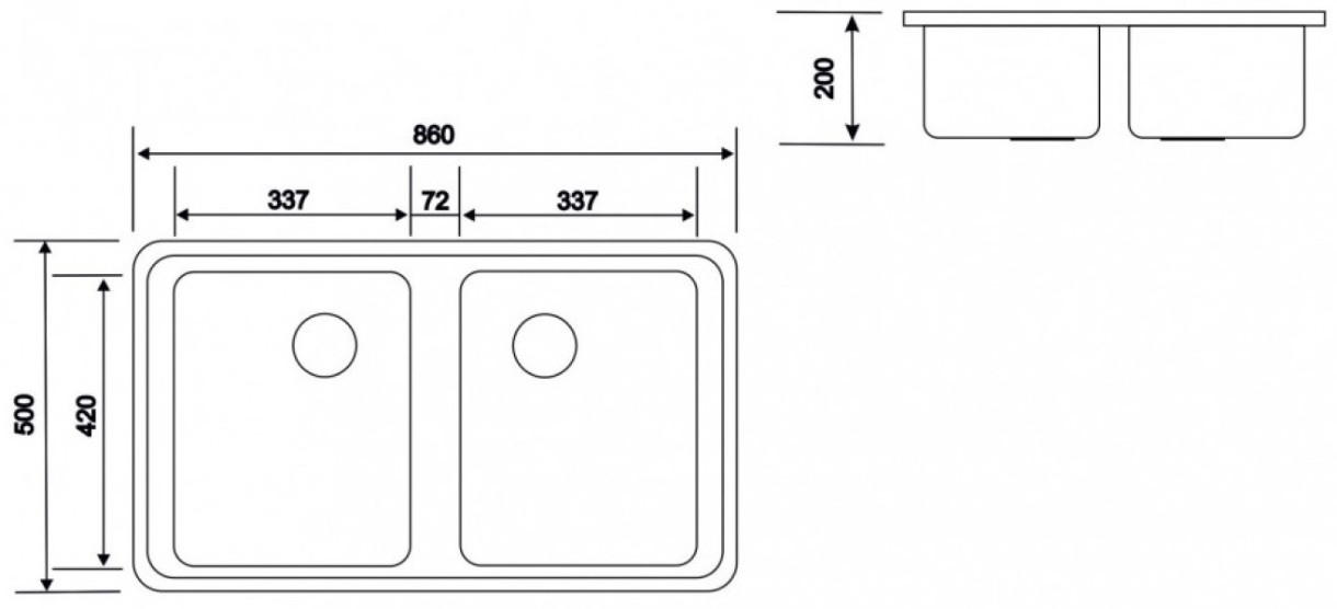 Размер мойки860х500 мм