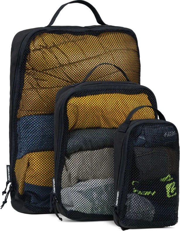Hannah Case set — набор сумок для хранения и перевозки вещей во время путешествия. Набор состоит из трех дорожных сумочек разных размеров. Каждая сумочка имеет сетчатый верх, благодаря которому вещи дышат. Чехлы закрываются на молнию, а в верхней части есть удобная ручка.