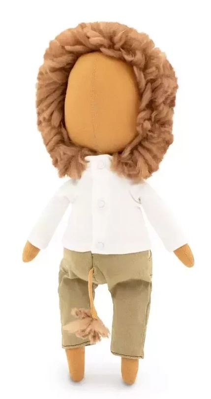 Лев Саймон – самый воспитанный лев на свете! Он всегда открывает девочкам дверь, говорит "Спасибо" и "Пожалуйста". Саймон одет в светлый лонгслив и укороченные штаны с объёмными карманами приглушенного зеленого цвета. Одежда выполнена из 100% натурального хлопка и полностью съемная.