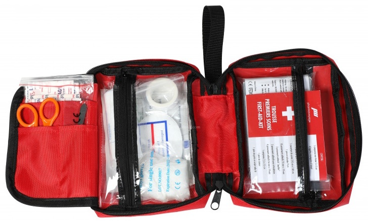 Комплектациякомпрессы, марля, скотч, повязки, лейкопластырь, ножницы, перчатки, плоскогубцы, спасательное одеяло