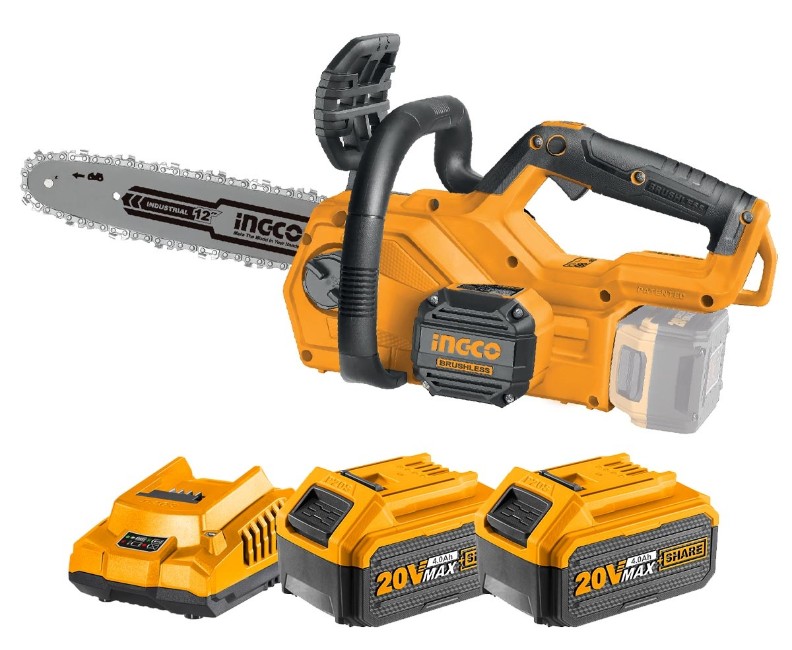 - Бесщеточная аккумуляторная цепная пила 20В, 2 АКБ 4Ач, и ЗУ INGCO CGSLI201286 INDUSTRIAL незаменимый помощник на садовом участке, а также при выполнении строительных и ремонтных работ.