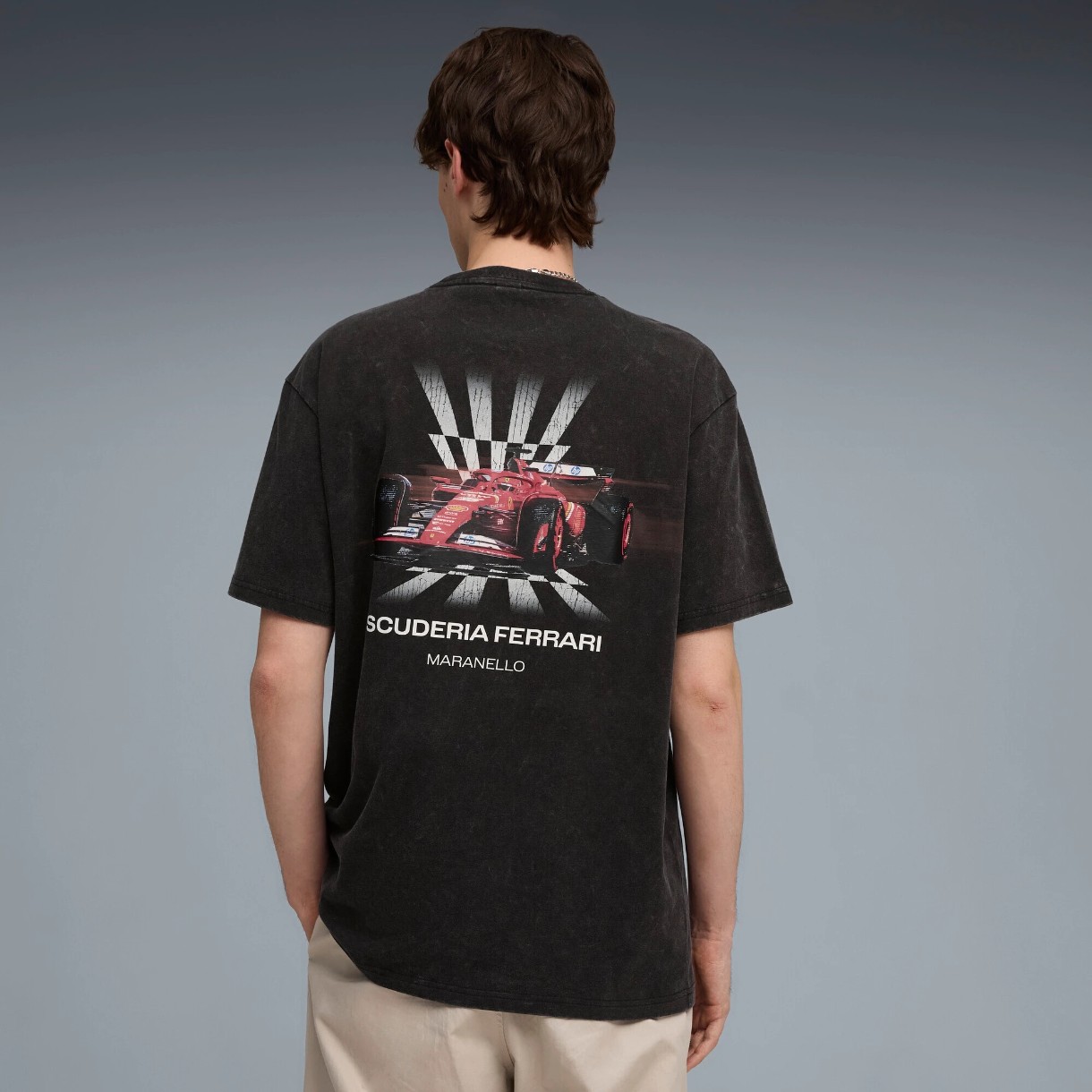 Главный акцент модели - выразительный графический принт на спине с суперкаром F1 Ferrari, который передаёт скорость, мощь и страсть к болиду. Футболка выполнена с использованием переработанного хлопка, сочетая качество, стиль и более ответственное производство.