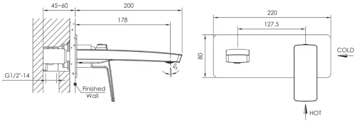 Длина излива178 мм