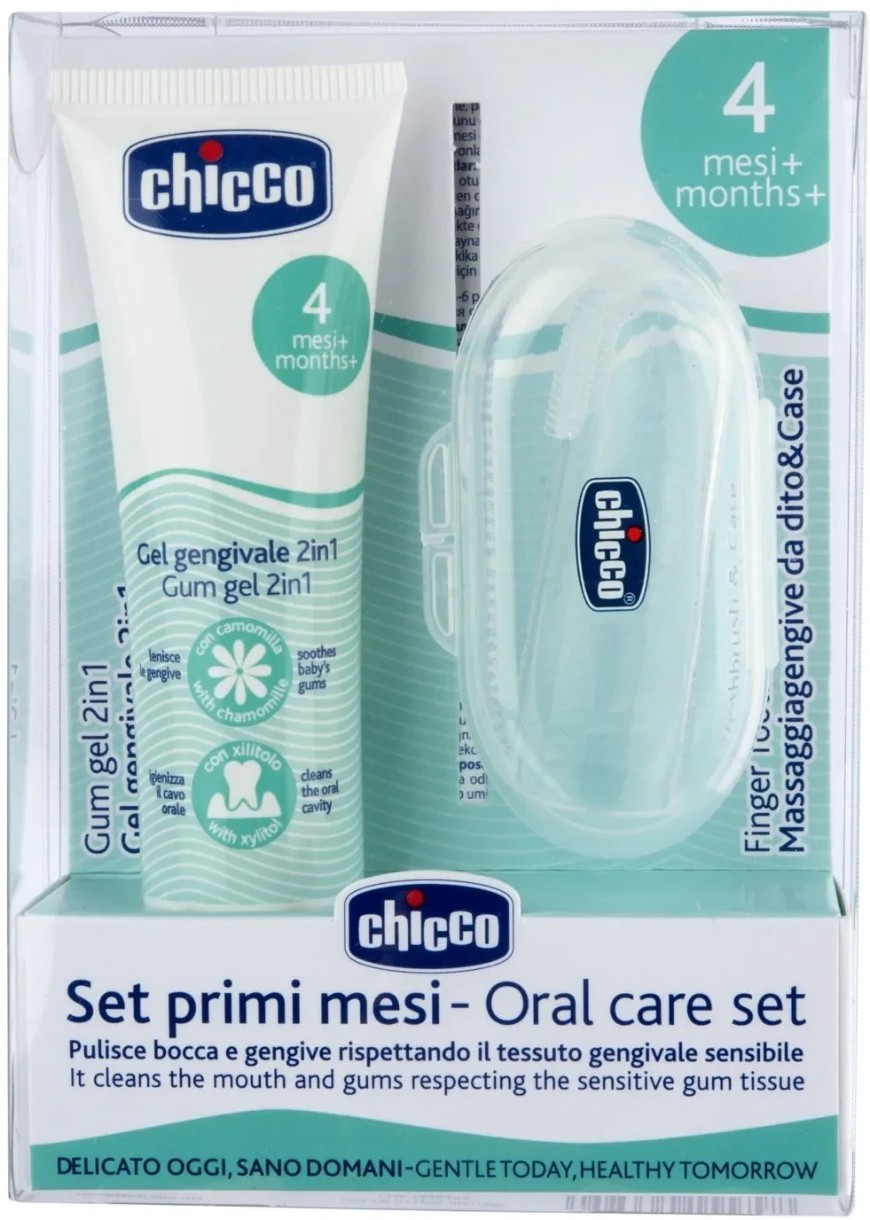 Набор для ухода за полостью рта Chicco создан специально для бережного ухода за ротовой полостью младенцев с 4+ месяцев.