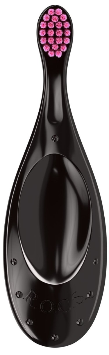 Щетка зубная ROCS «Baby» для детей от 0 до 3 лет отличается необычной специально разработанной формой ручки, которая изготовлена из безопасного высококачественного пластика PET. Форма ручки, идеально гладкая и широкая, препятствует глубокому проникновению щетки в ротовую полость ребенка. Обратная сторона ручки может выполнять функцию «кусалки» («прорезывателя»). Однородность и плотная структура пластика уменьшают возможность задержки и развития бактерий на поверхности изделия.