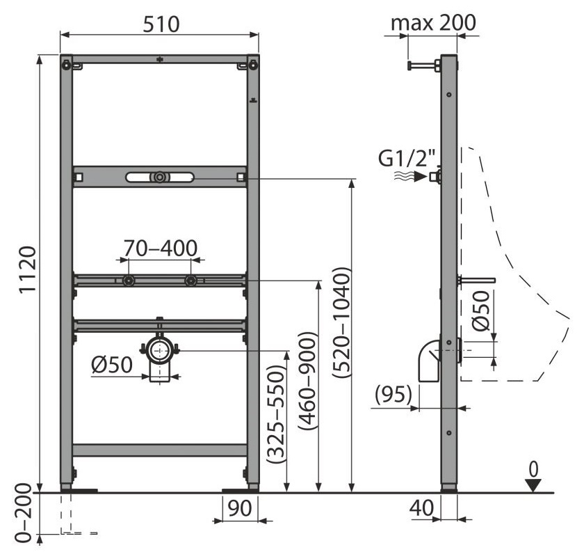 Характеристики Инсталляция для писсуара Alcaplast A107/1120