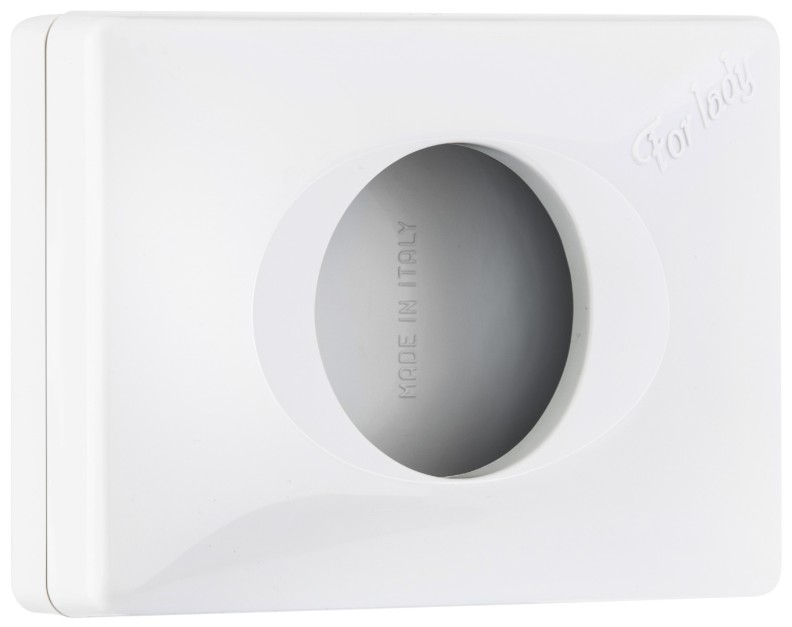 Держатель пакетов гигиенических ACQUALBA с окошком, гигиеничное и удобное решение для туалетной комнаты. Изготовлен из белого ударопрочного пластика.