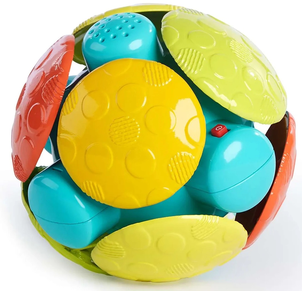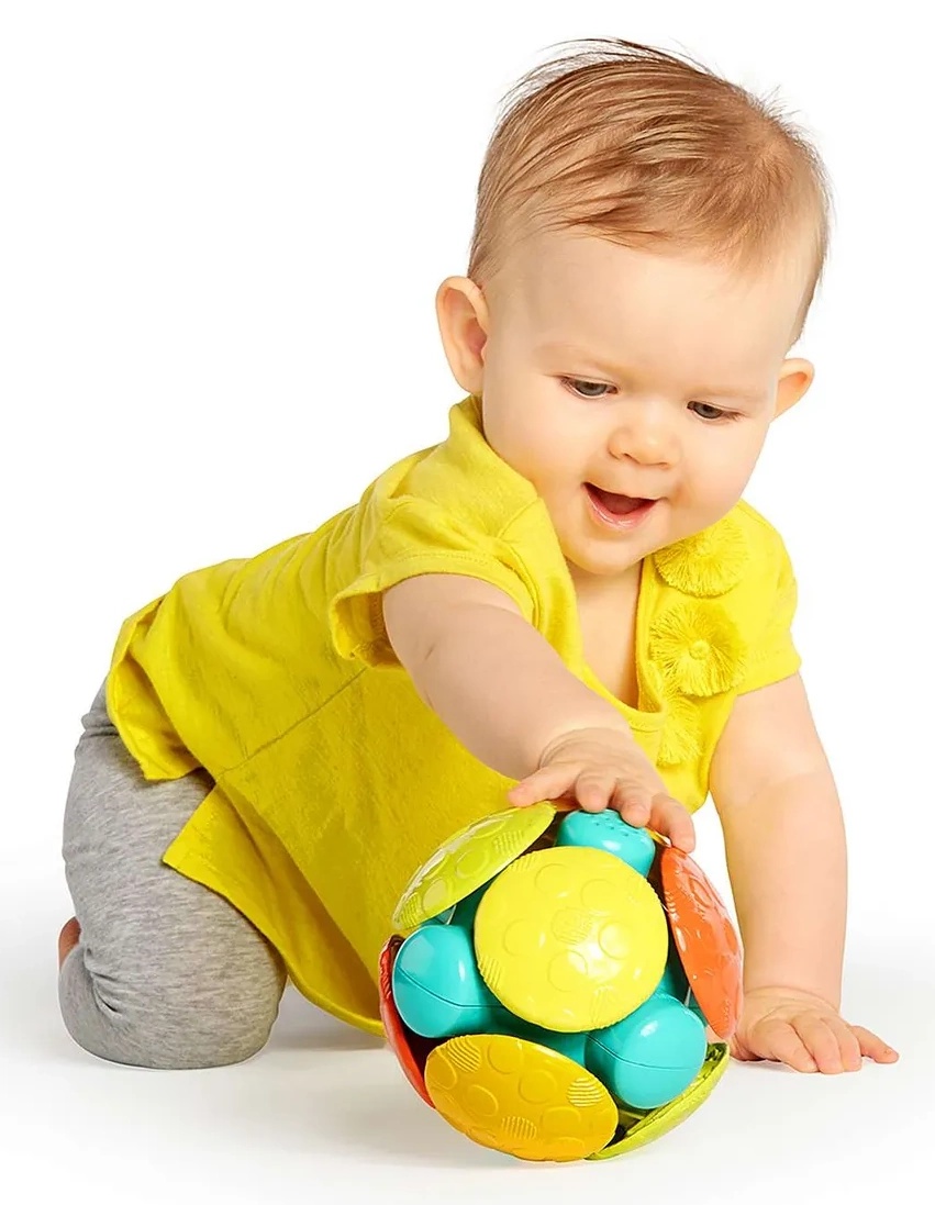 Приготовьтесь наблюдать, как ваш малыш будет кряхтеть, ковылять и ползать, пытаясь поймать этот неуловимый мячик! Стоит только встряхнуть этот маленький мячик, и он покатится по дому в разных направлениях.