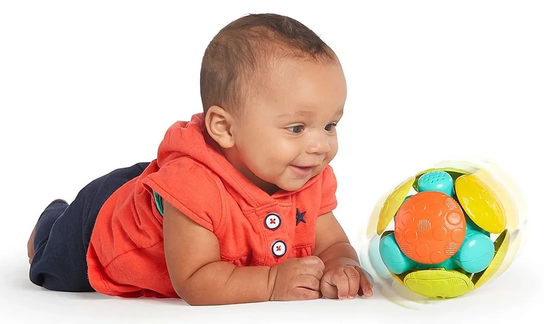 Когда мяч катится, каждый поворот вызывает у ребенка приступ хихиканья.