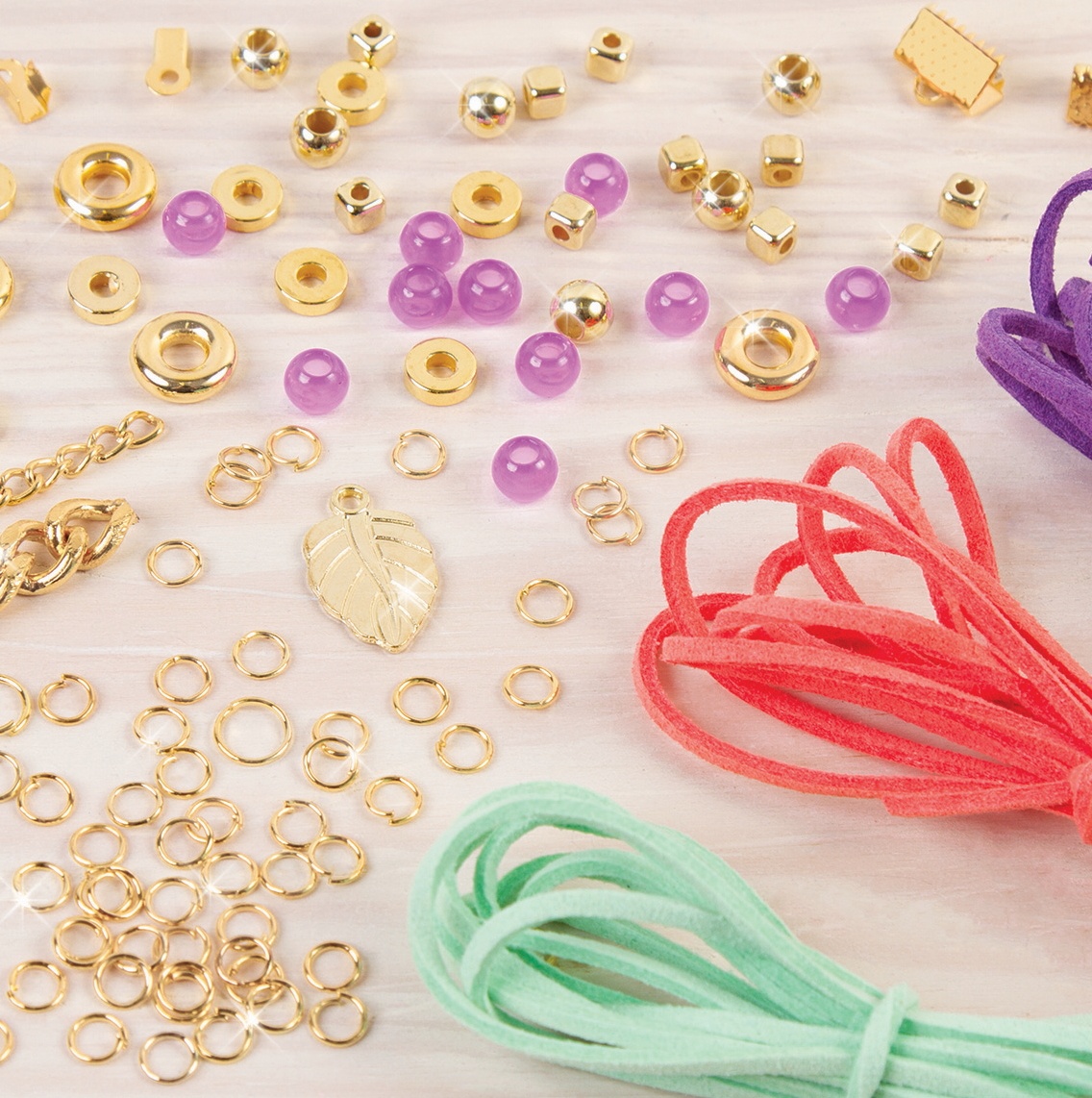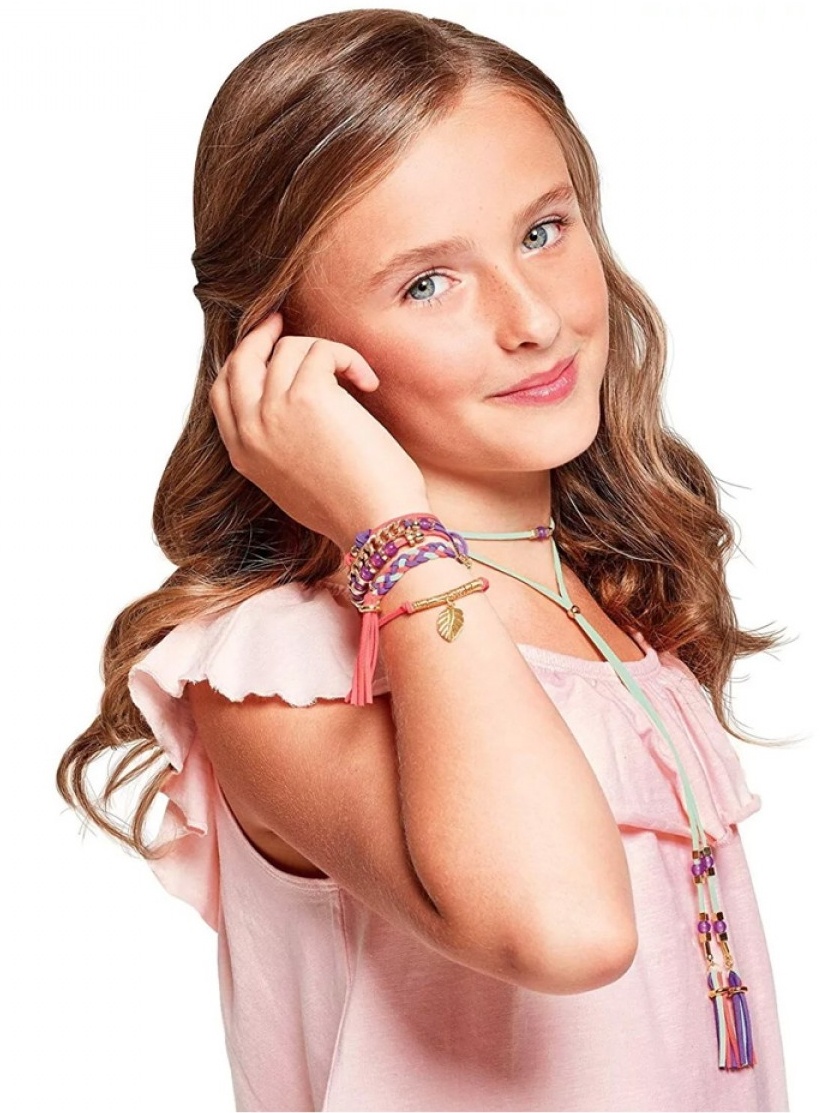 С помощью этого набора можно создать 5 красочных браслетов и колье, которые станут изюминкой любого образа. Оригинальные украшения, сделанные из искусственной замши и украшенные стильными декоративными элементами фиолетового и золотого оттенков, сделают тебя невероятно привлекательной!