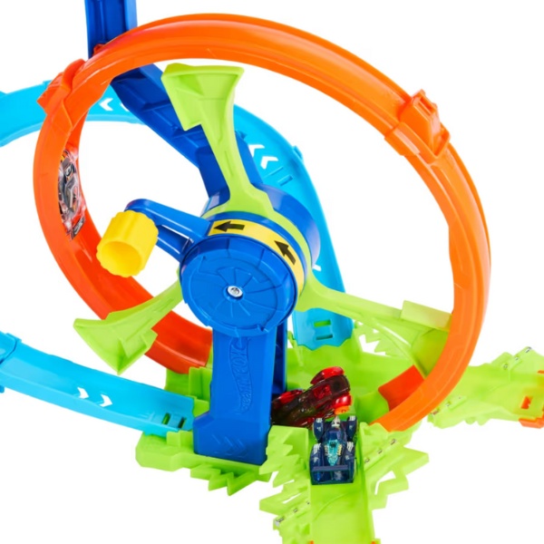 Опустите включённую машинку (масштаб 1:64) на трассу, и механизм автоматически ускорит её, запуская через петлю, крутые повороты и зону столкновений, прежде чем снова вернуться к старту. Добавьте ещё машинки (продаются отдельно) – и создавайте эпичные аварии и соревнования!