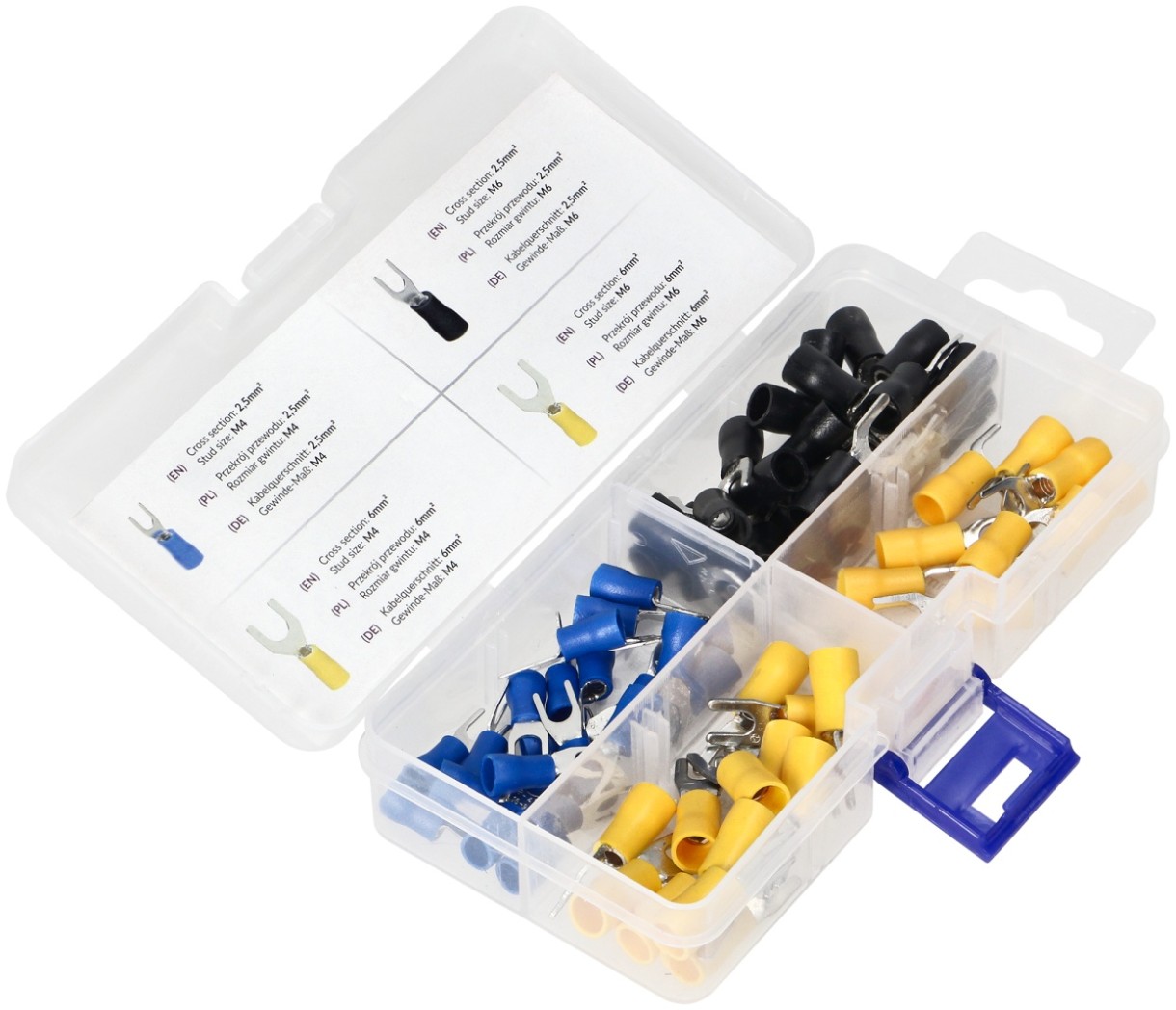Набор кабельных наконечников от ORNO включает разнообразные размеры для безопасного и эффективного электрического соединения.