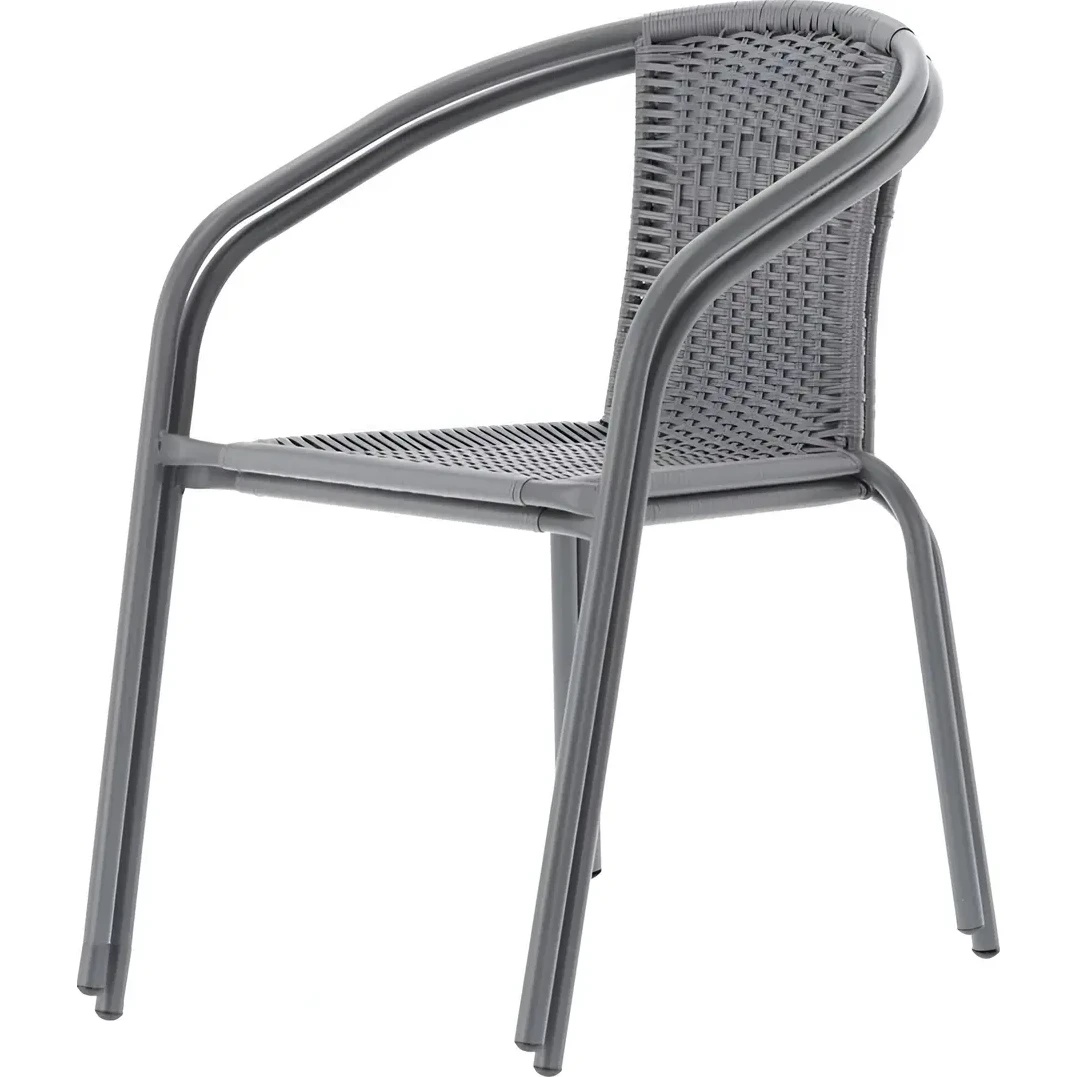 Кресла имеют цельную сварную конструкцию и выполнены с плетением из полиротанга, что обеспечивает долговечность и устойчивость к внешним условиям.