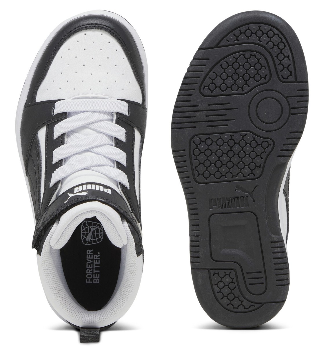 Ботинки детские Puma Rebound V6 Mid Ac+ Ps Puma White/Black/Shadow Gray, s.27.5