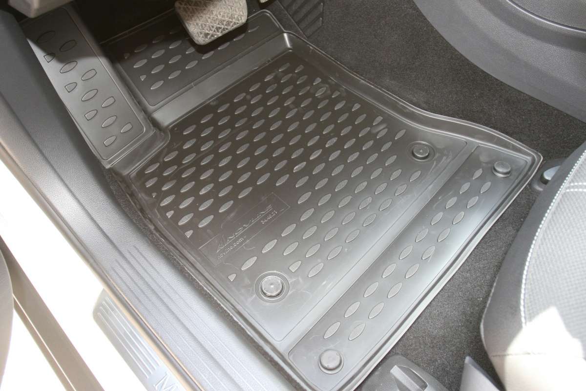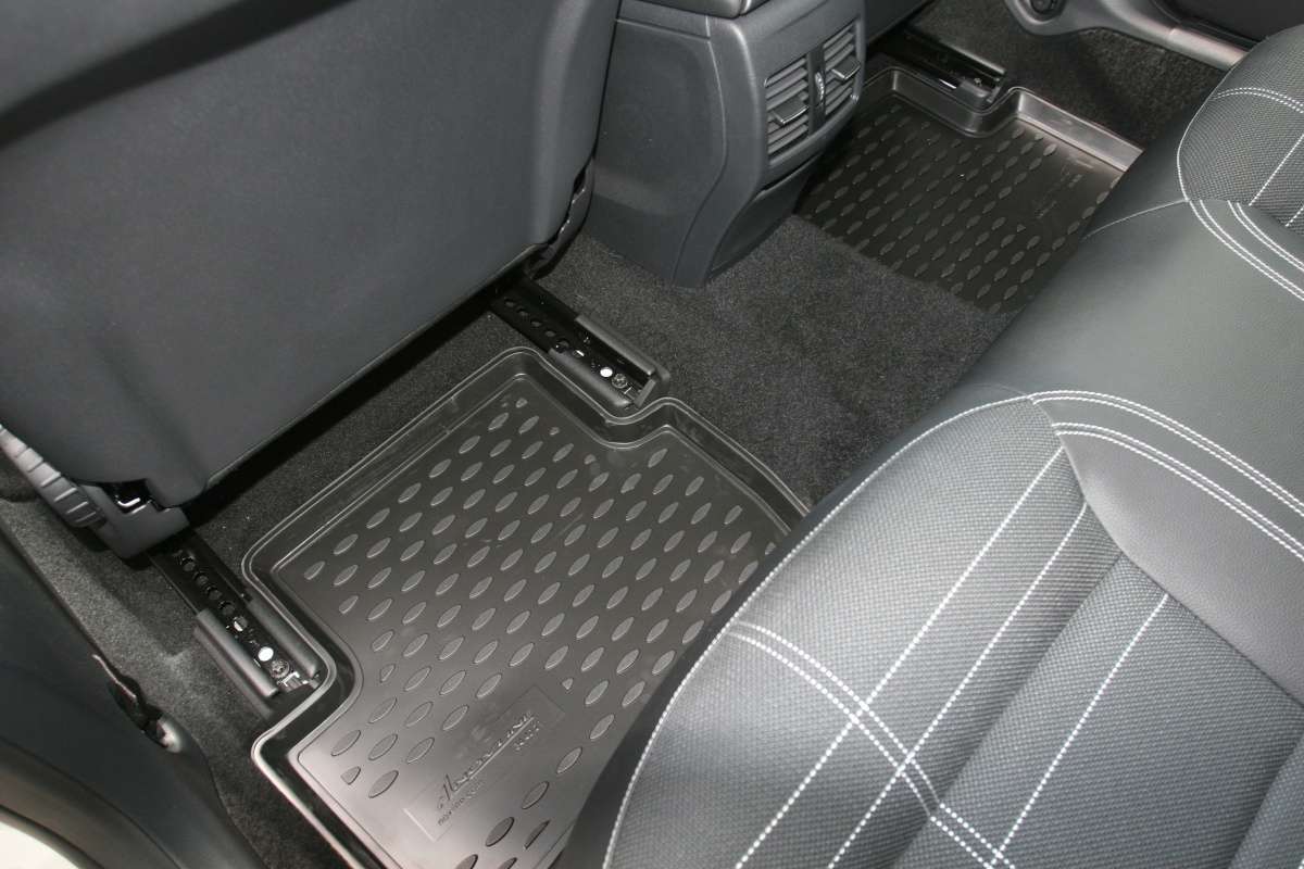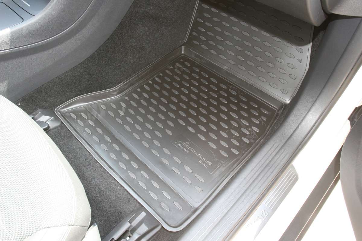Коврики в салон для Mercedes GLA-class 2015+ изготовлены из экологически чистого полимерного материала. Представленные коврики пластичны, не боятся химически активных веществ. Одним из плюсов является фиксация ковриков специальными крепежами. Производитель гарантирует, что во время движения автомобиля коврики не сдвинутся с места. Конструкция ковриков исключает блокирование педали тормоза, акселератора или сцепления. Нужно отметить, что передние коврики имеют специальный язычок, который закрывает площадку отдыха левой ноги, а задние коврики соединены между собой перемычкой.
