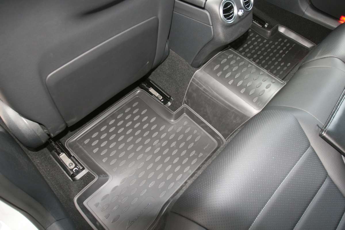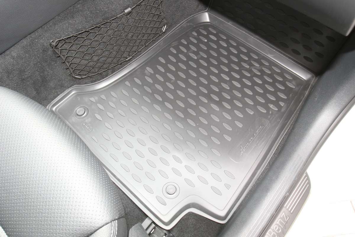 Коврики в салон для Mercedes-Benz С-Class (W205) 2014+ изготовлены из экологически чистого полимерного материала. Представленные коврики пластичны, не боятся химически активных веществ. Одним из плюсов является фиксация ковриков специальными крепежами. Производитель гарантирует, что во время движения автомобиля коврики не сдвинутся с места. Конструкция ковриков исключает блокирование педали тормоза, акселератора или сцепления. Нужно отметить, что передние коврики имеют специальный язычок, который закрывает площадку отдыха левой ноги, а задние коврики соединены между собой перемычкой.