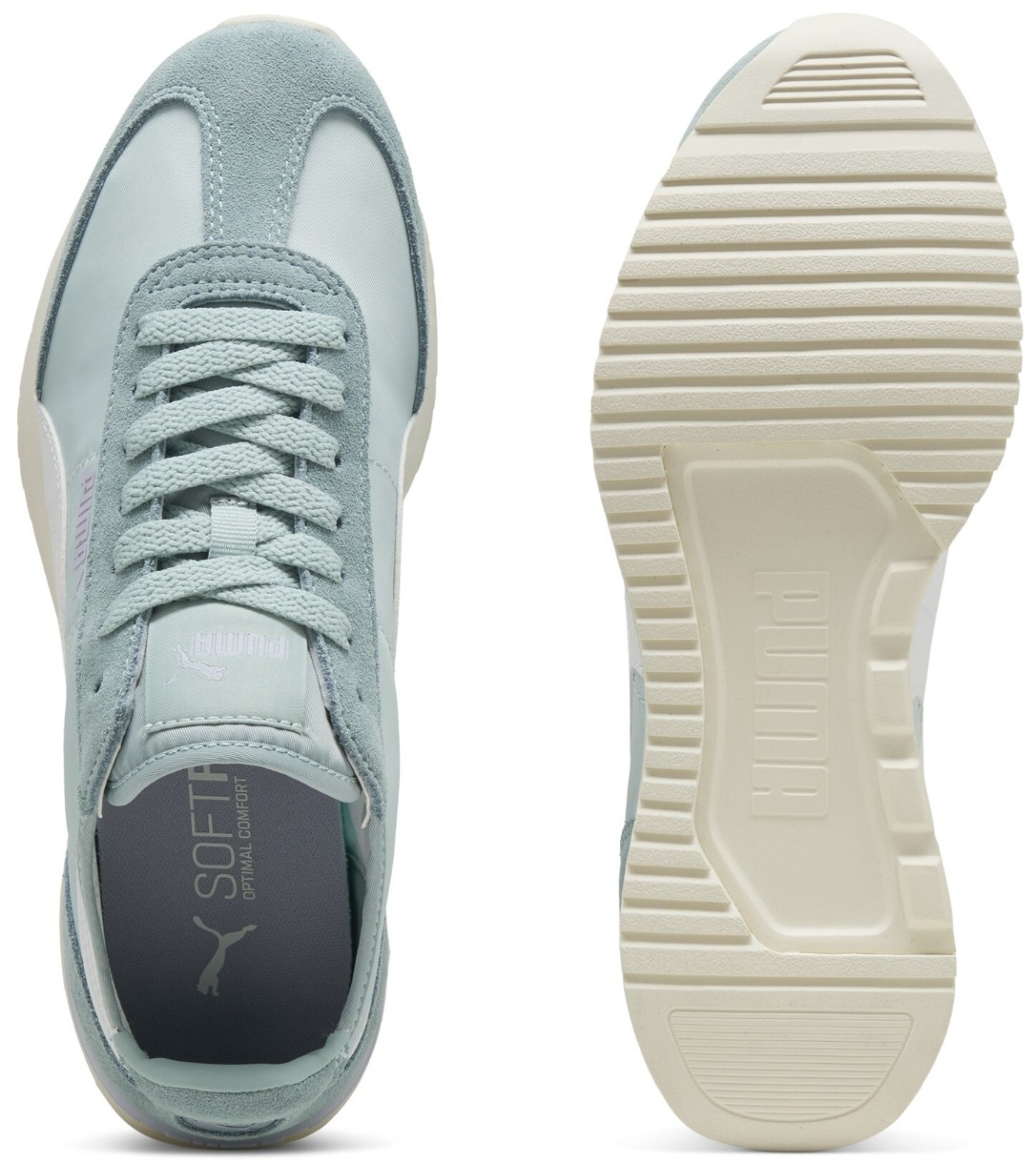 Вставка из ТПУ на пятке делает конструкцию более устойчивой, а удобный язычок и классическая шнуровка позволяют быстро и легко надевать обувь. По бокам расположена узнаваемая синтетическая полоска PUMA Formstrip, подчёркивающая динамичный и спортивный характер модели.