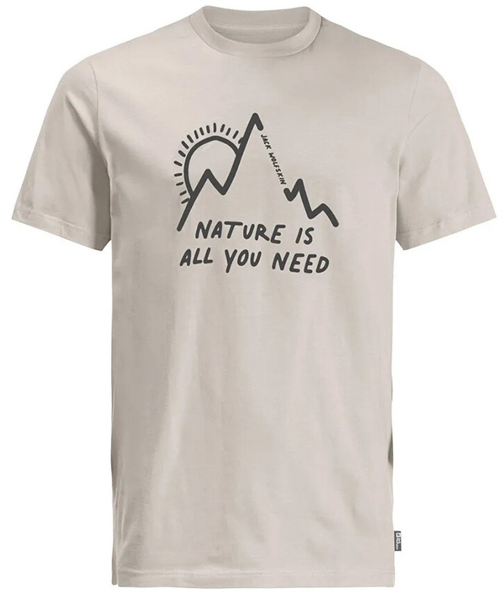 Простой графический рисунок на передней части футболки с надписью «Nature is all you need» («Природа — это все, что вам нужно»), подчеркнет вашу экологичность и страсть к походам и путешествиям, а также придаст вам стильный и непринужденный вид.