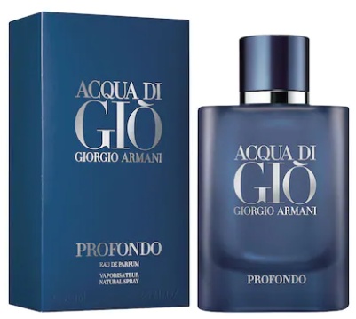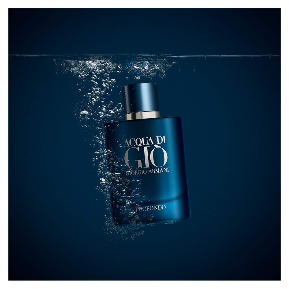 GIORGIO ARMANI Acqua Di Gio Profondo — Это парфюмированная вода для мужчин, который олицетворяет захватывающее погружение в глубину души, охватывает ценности свободы, чувственной и современной мужественности и раскрывает все более интимное измерение. Начальная нота: бергамот, водные ноты, зеленый мандарин. Нота сердца: кипарис, лаванда, мастиковое дерево, розмарин. Конечная нота: амбра, мускус, пачули