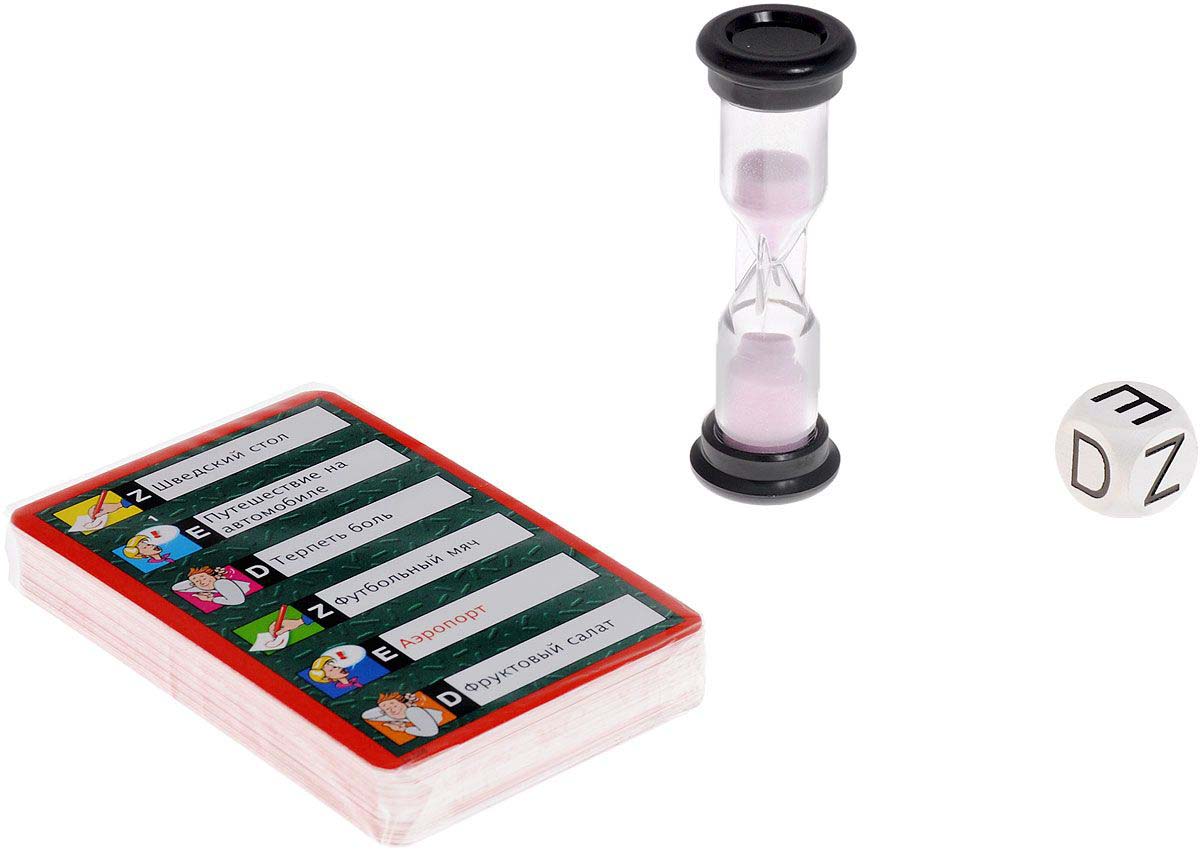Комплектация55 карточек с заданиями, 1 игральный кубик, песочные часы, правила игры