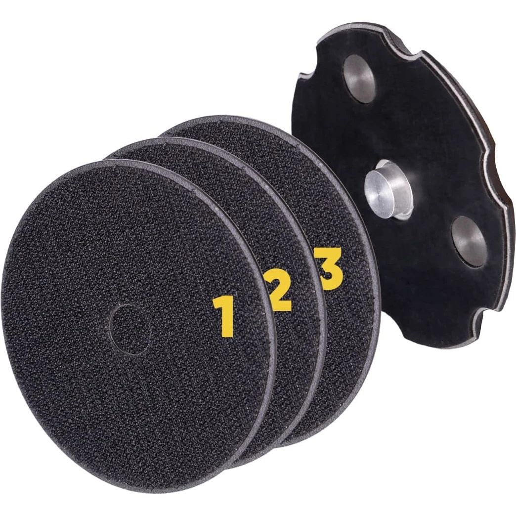Круги надежно крепятся к стальным держателям до их полного износа. Смена держателей с кругами происходит мгновенно в один клик за счет магнитного замка. И все это на одной УШМ.