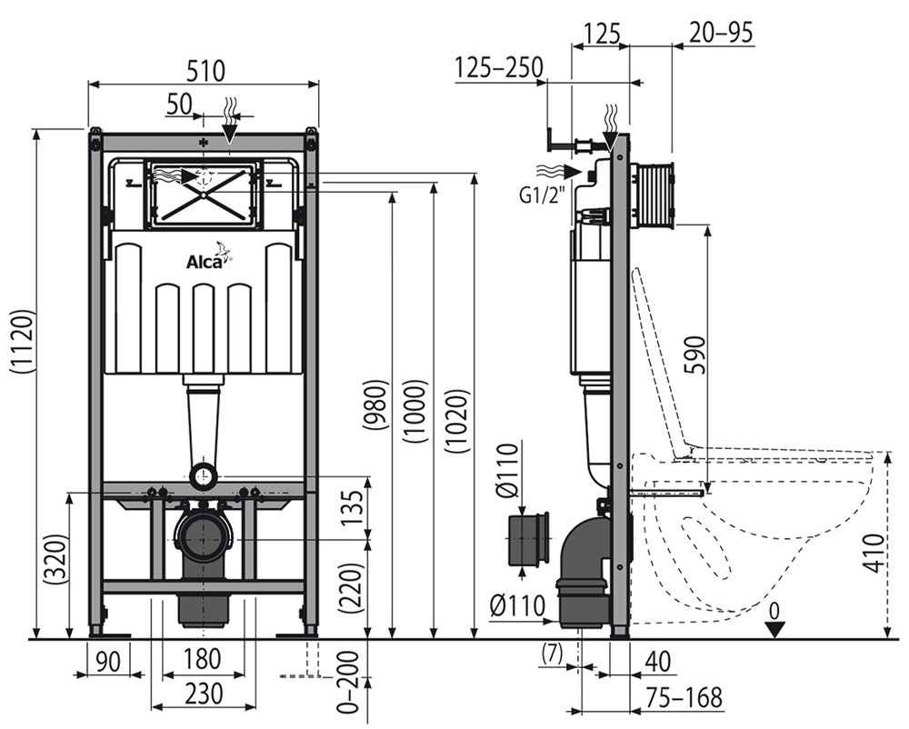 Инсталляция для подвесного унитаза Alcaplast Sadromodul AM101/1120+M91+M670 (108759)