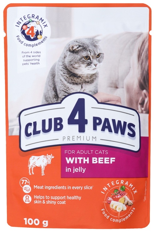 Влажный корм для кошек Club 4 Paws Adult Cats with Beef in Jelly 0.1kg 24pcs