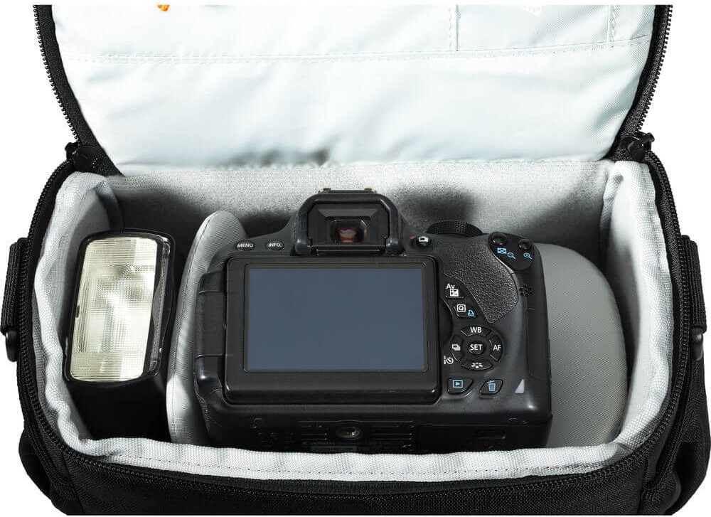 Она выполнена из высококачественного, прочного и легкого материала, имеет мягкие прокладки, для предотвращения повреждений при падении и ударах, и обеспечит максимальную сохранность Вашего оборудования. В ней присутствуют несколько удобных карманов и секций, для хранения фотоаксессуаров. А не скользящий, регулируемый ремень, позволит настроить комфортную для Вас длину, для максимального удобства во время переноски. Это изделие идеально подойдет для тех, кто любит практичность и комфорт во всём.
