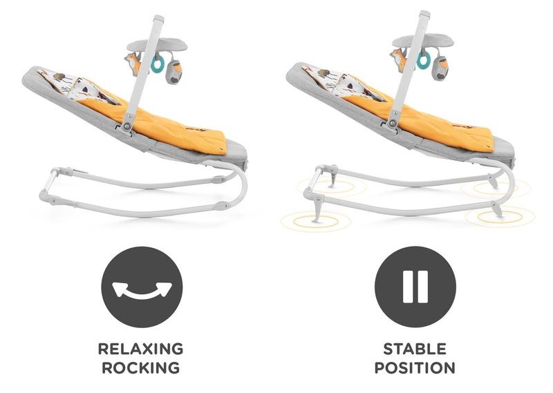 Kinderkraft FELIO - удобный шезлонг, который легко превращается в качалку, а когда ребенок немного подрастет, его можно использовать как кресло. Игрушки, мелодии и вибрации побуждают ребенка к игре и развитию. Входящий в комплект мягкий конверт позволяет использовать шезлонг с первых дней жизни. 3 игрушки на дуге поспособствуют развитию воображения и координации движений ребенка, стимулируя осязание и слух.