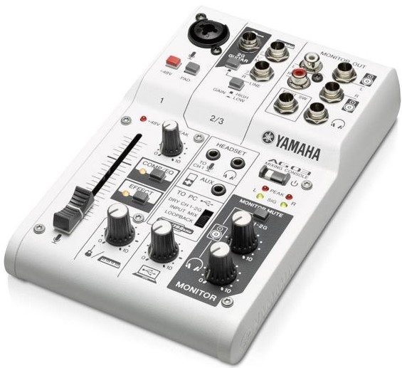 Микшерный пульт со встроенным аудио интерфейсом (аудио карта) Yamaha AG03 был спроектирован специально для музыкантов и любителей компьютерных игр, а также для отменного производства подкастов и осуществления онлайн трансляций. Отметим, что такой пульт дает возможность для произведения высококачественной аудиозаписи/воспроизведения и полностью совместим с PC/Mac, а также устройствами iPad.