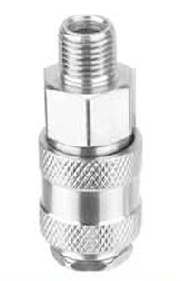 Быстроразъемное соединение EMTOP для воздушных компрессоров с наружной резьбой 1/4 дюйма, предназначенное для безопасного и эффективного соединения в пневматических системах. Совместимо с европейскими и американскими типами, идеально подходит для работ, требующих быстрой смены инструмента без утечек воздуха.