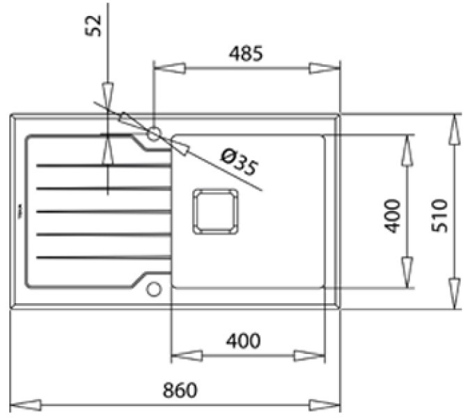 Размер мойки860х510 мм