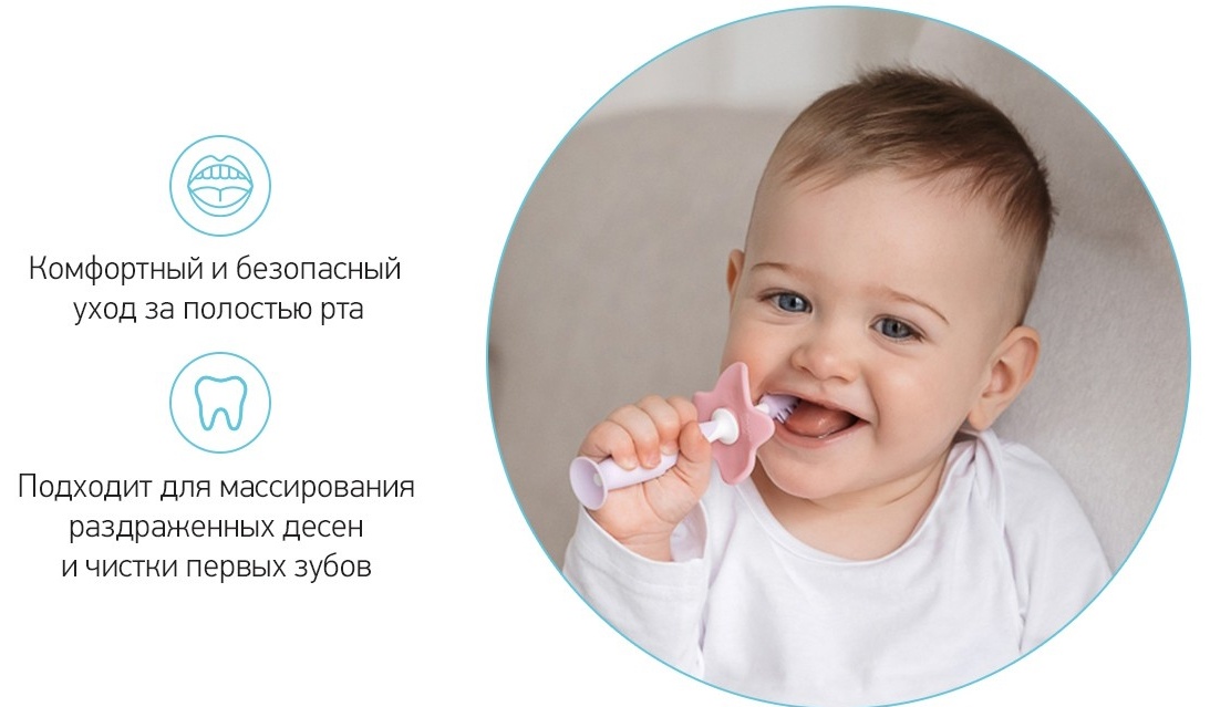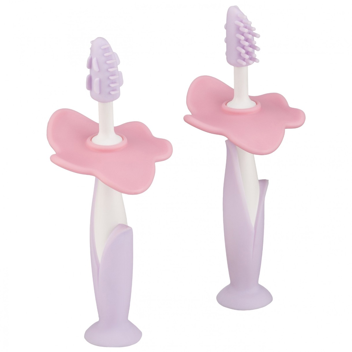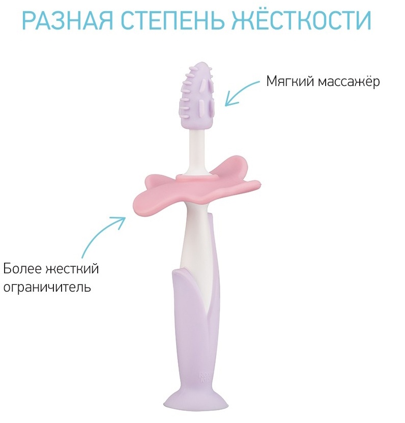 Набор зубных щеток-прорезывателей FLOWER от ROXY-KIDS предназначен для комфортного и безопасного ухода за полостью рта ребенка с первых месяцев жизни. Подходит для массирования раздраженных десен и чистки первых зубов. Ограничитель защищает малыша от заглатывания, снимается при необходимости Рельефная поверхность обеспечивает бережный массаж десен. Элементы разной степени жесткости, мягкий массажер и более жесткий ограничитель. Ребенок сам выбирает, какой элемент ему нравится грызть. Удобно хранить на присоске на различных поверхностях. Массажеры легкие и удобно ложатся в маленькую детскую ручку. Ребенок самостоятельно держит грызунок, мелкая моторика развивается быстрее. Ручка удобна и для взрослых, которые захотят почистить малышу его первые зубки. Прорезыватели просты в уходе, не скапливают на себе пыль, достаточно промыть теплой водой. Набор сертифицирован, материал гипоаллергенен и безопасен для детей.