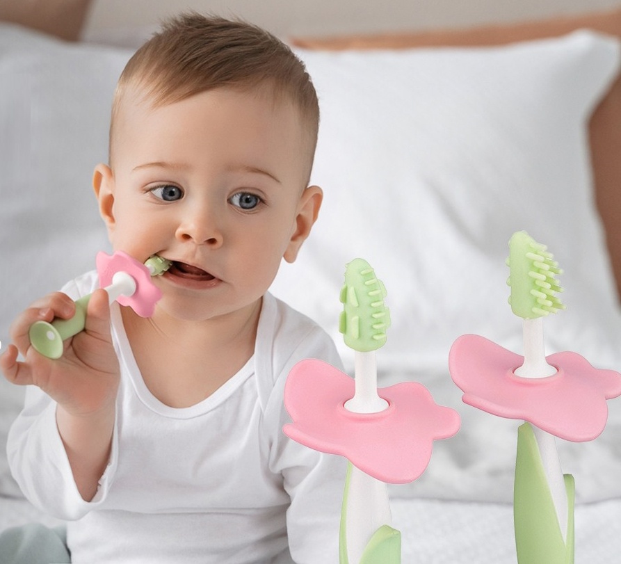 Набор зубных щеток-прорезывателей FLOWER от ROXY-KIDS предназначен для комфортного и безопасного ухода за полостью рта ребенка с первых месяцев жизни. Подходит для массирования раздраженных десен и чистки первых зубов. Ограничитель защищает малыша от заглатывания, снимается при необходимости Рельефная поверхность обеспечивает бережный массаж десен. Элементы разной степени жесткости, мягкий массажер и более жесткий ограничитель. Ребенок сам выбирает, какой элемент ему нравится грызть. Удобно хранить на присоске на различных поверхностях. Массажеры легкие и удобно ложатся в маленькую детскую ручку. Ребенок самостоятельно держит грызунок, мелкая моторика развивается быстрее. Ручка удобна и для взрослых, которые захотят почистить малышу его первые зубки. Прорезыватели просты в уходе, не скапливают на себе пыль, достаточно промыть теплой водой. Набор сертифицирован, материал гипоаллергенен и безопасен для детей.
