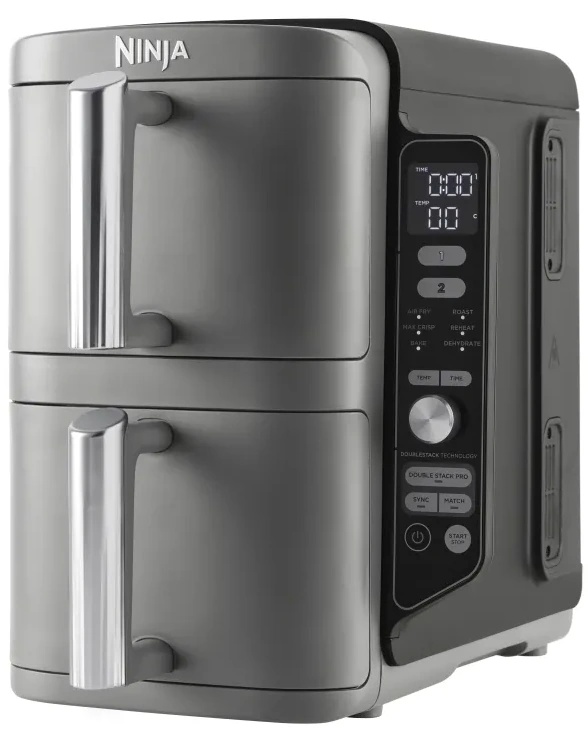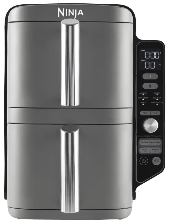 Быстро, вкусно и без забот, именно так можно создавать ежедневный сбалансированный рацион с мультипечью Ninja Double Stack XL 2-Level Air Fryer 9,5 л SL400EU! Уникальный дизайн с двумя чашамі по 4,75 л имеет узкую форму, поэтому оптимально интегрируется в любую кухню. Чаши расположены друг над другом, а мультипечь не занимает лишнего места на рабочей поверхности. Общий объем двух чаш составляет 9,5 л, но его можно разделить на 4 зоны и готовить совершенно разные блюда одновременно на 55% быстрее, чем в конвекционной печи. Вам доступны 6 универсальных функций приготовления, охватывающих множество базовых рецептов – от жарки без масла до сушки ингредиентов. Интуитивно понятная панель управления поможет вам настроить нужный режим, контролировать температуру, время и способ функционирования двух чаш относительно друг друга. А если вам захочется экспериментов, попробуйте приготовить что-то по рецепту из книги от шефа.