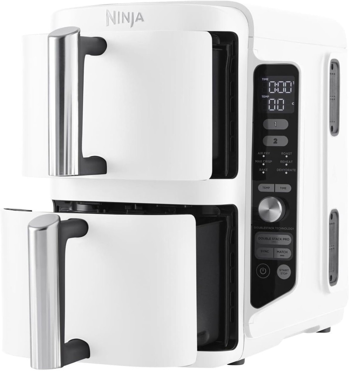 Как приготовить 4 блюда одновременно и сохранить их вкус? Пикантные куриные крылышки, хрустящий картофель фри, нежный овощной гарнир и даже сочный стейк легко разместить на решетке для зонирования, обеспечив ужином до 8 человек. Вам больше не нужно выбирать, что приготовить сначала, или беспокоиться о том, что один ингредиент будет готов, а другой остынет. Общий объем 9,5 л с двумя корзинами позволяет готовить все одновременно: режим SYNC синхронизирует настройки, а MATCH дублирует их. Мощность 2470 Вт и температурный диапазон 40–240 °C предоставляют полный контроль над процессом. Забудьте о компромиссах между временем, качеством и усилиями, мультипечь Ninja Double Stack XL 2-Level Air Fryer 9,5 л SL400EUWH выбирают практичные пользователи для улучшения рациона.
