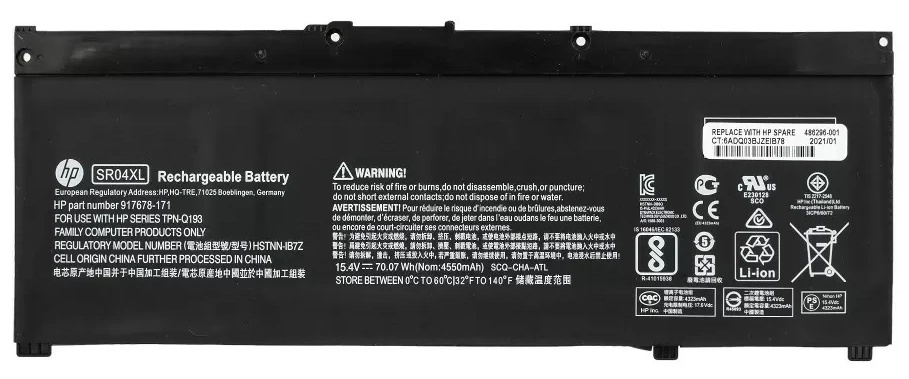 Совместимая модельSR04XL, SR04070XL, HSTNN-DB7W, HSTNN-IB7Z, TPN-Q193, TPN-C133, TPN-134