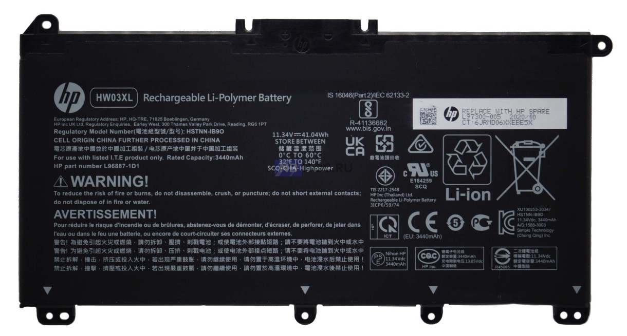Совместимая модельHSTNN-DB9Y, HSTNN-IB90, HSTNN-IB9O, HSTNN-LB8U, HSTNN-OB2A, HW03XL, L96887-1D1, L96887-2B1, L96887-421, L96887-AC1, L97300-005