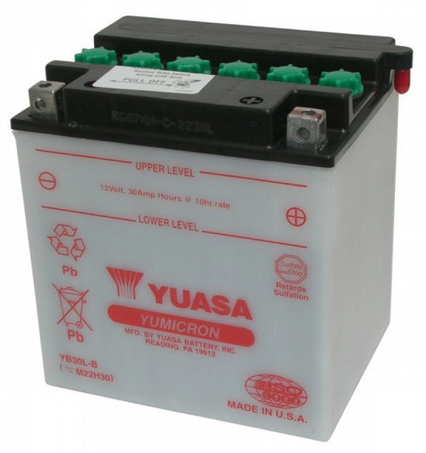 Свинцово-кислотный аккумулятор YUASA YB30CL-B (ёмкость 30 Ач, напряжение 12 В, пусковой ток 300 А) разработан специально для мототехники. Его главные отличительные особенности — высокие разрядные характеристики при малых размерах, виброустойчивость и стабильная работа при экстремальных температурах. Корпус выполнен из долговечного пластика. Герметичная конструкция исключает возможность протекания электролита, а односторонний клапан избыточного давления обеспечивает рекомбинацию газов внутри батареи. Аккумуляторы YUASA — премиальный сегмент, это подтверждено и сертификатами и доверием во всём мире, в том числе от крупнейших производителей мототехники.