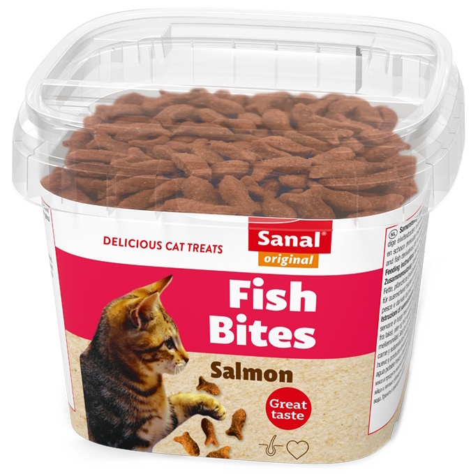 Ни одна кошка не устоит от удовольствия попробовать восхитительное угощение SANAL Fish Bites в виде хрустящих рыбок с витаминами А, D3, E и вкусом лосося. Лосось содержит Омега-3 жирные кислоты, обеспечивающие здоровье сосудам и сердцу.