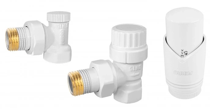 Комплектациятермостатическая головка GT33, термостатический клапан угловой 1/2”, отсекающий клапан угловой 1/2”